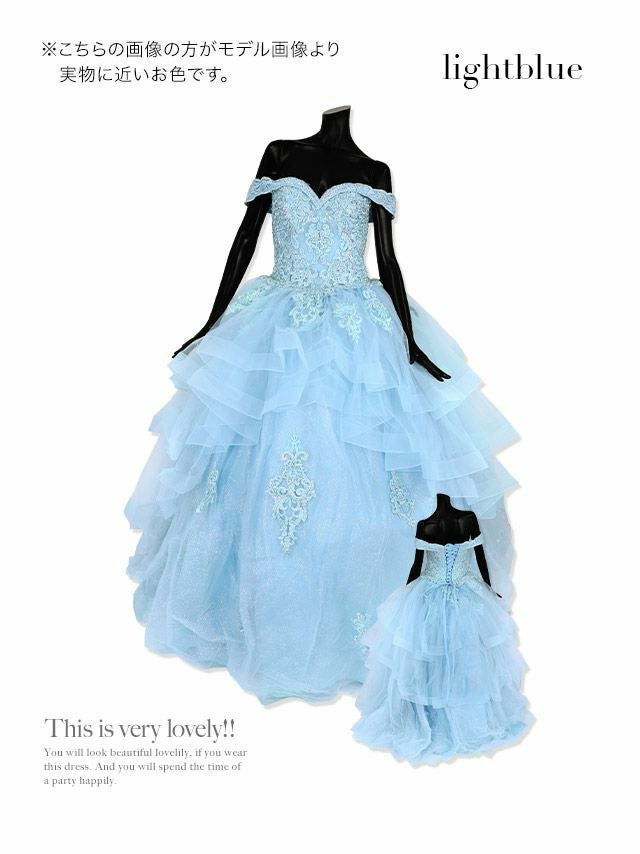 オフショルダーエレガントビジュー刺繍バックスピンドルゴージャスラメロング訳ありインポートドレスのカラーバリエーション
