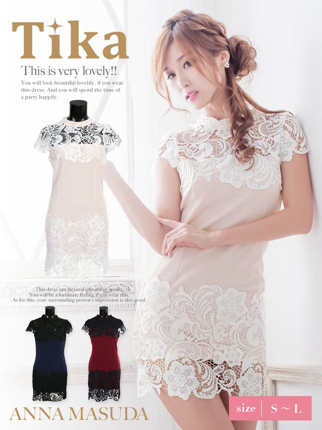 袖ありモックネックレース訳ありタイトミニドレスのカラーバリエーション