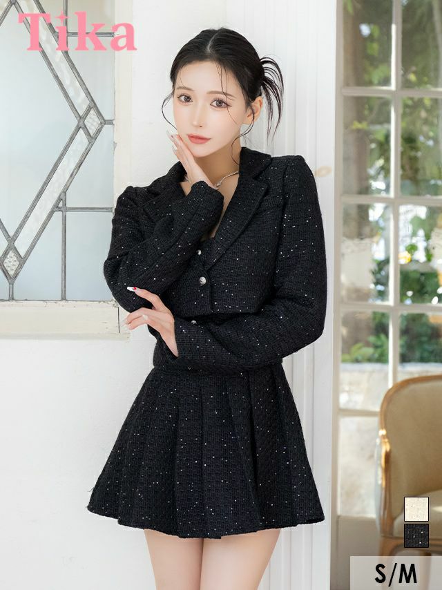 5. [ワケありセール] (ワンピースなし) ツイードラメテーラードジャケットスーツ (Sサイズ/Mサイズ) (せいせい 聖菜/キャバスーツ着用)