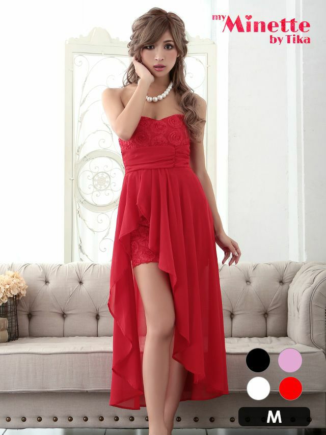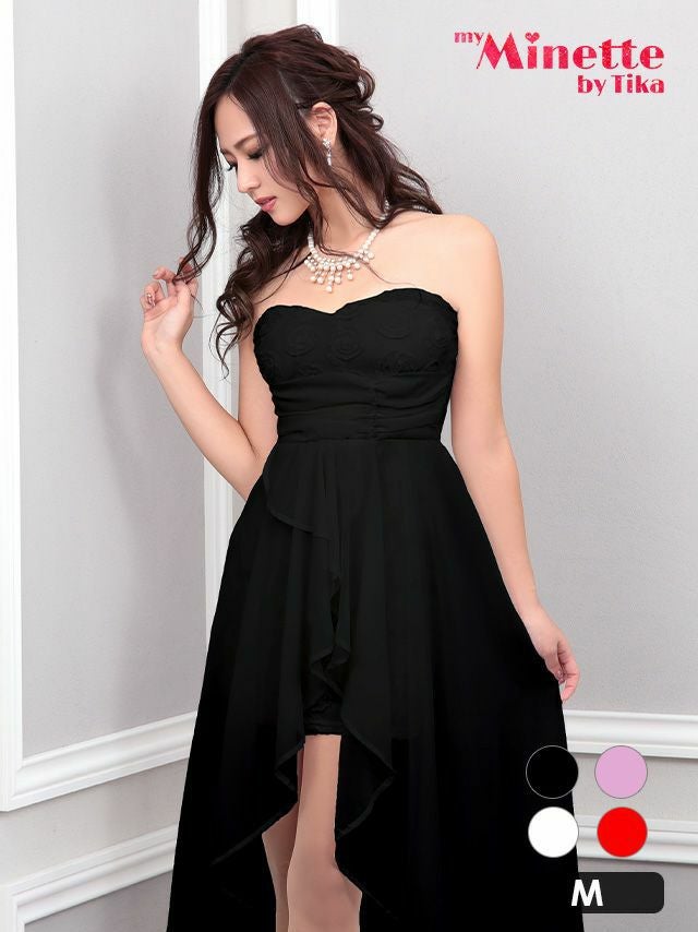 5. [ワケありセール] ウエスト切替フラワーモチーフタイトミニロングテールドレス (Mサイズ) (ゆんころ/キャバドレス着用) [myMinette/マイミネット]