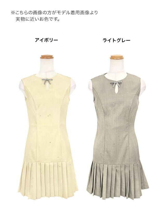 ワンピース Aライン ミニドレス ノースリーブ 上品 ブラジャーのまま リボンブローチ付き 訳あり プリーツ 同伴のイメージ画像1