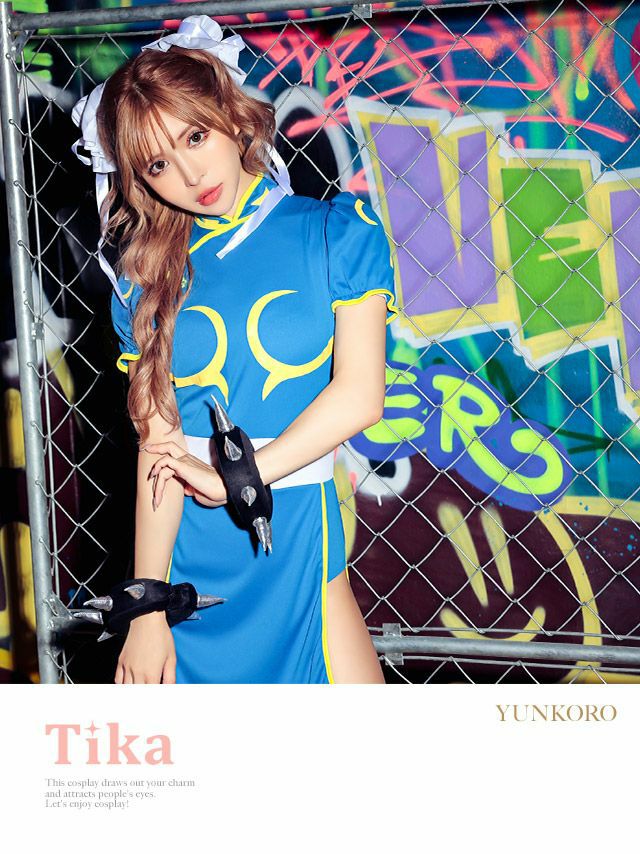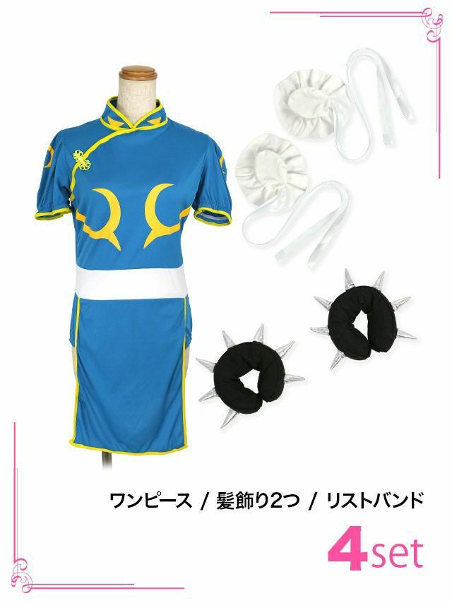 5. [ワケありセール] (髪飾りなし) コスプレ 2点set ストリートファイター春麗キャラクター [ワンピース+リストバンド]