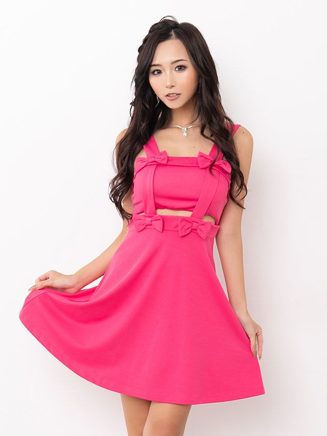 キャバドレス myMinette マイミネット ワンカラー ノースリーブ ウエストカット リボン フレア ミニドレス