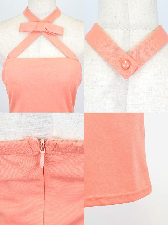 4. [SALE] シンプルワンカラーホルターネックリボンタイトミニドレス (ちぴたん着用)