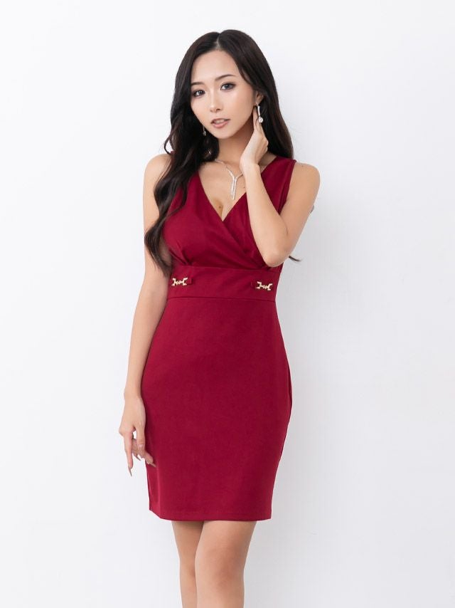 キャバドレス myMinette マイミネット シンプル ワンカラー ノースリーブ Vネック タイト ミニドレス