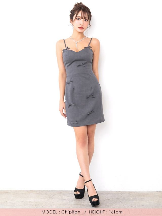 ミニリボンモチーフワンカラーキャミソールタイトミニドレスの全身フロント画像