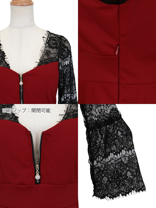 5. [SALE] ワンピース 安い Aラインミニドレス 長袖 ホステス 谷間 レース 大人 上品 ストレッチ ジップ ブラジャーのまま (林姫奈妙着用)