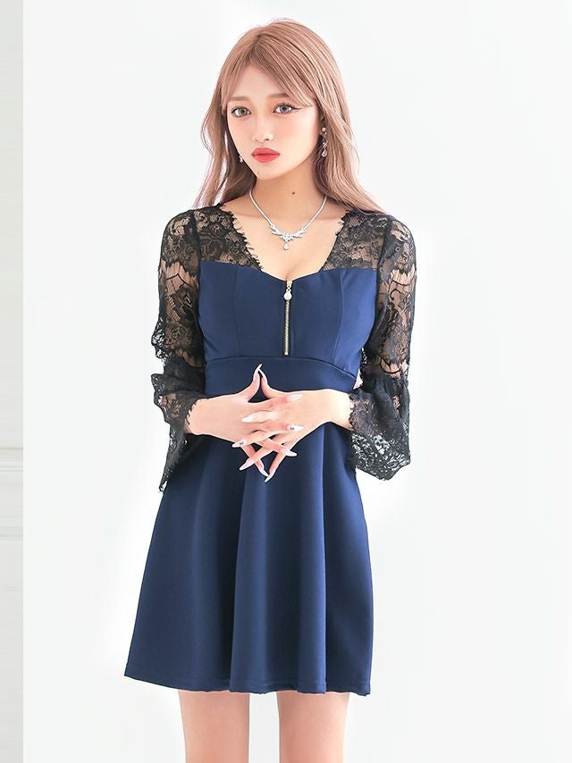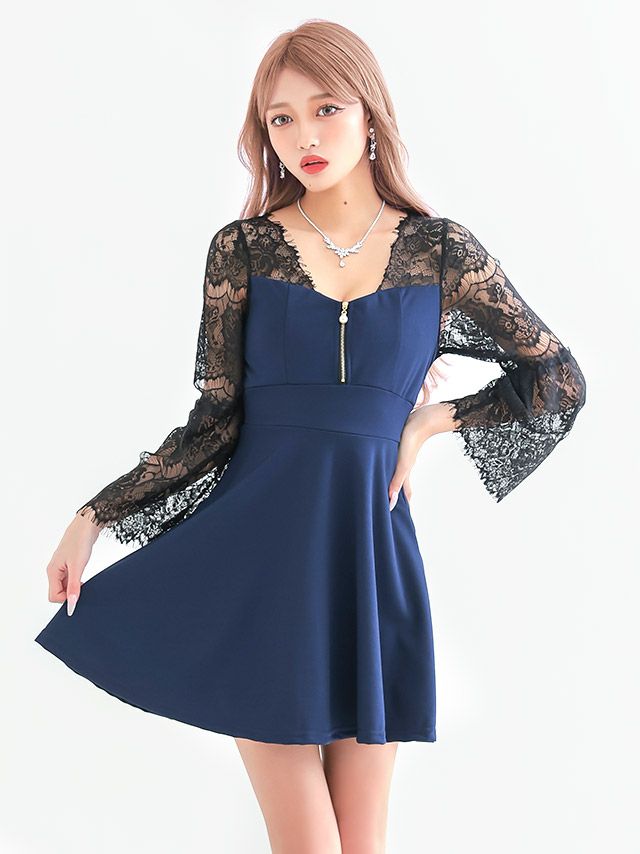 5. [SALE] ワンピース 安い Aラインミニドレス 長袖 ホステス 谷間 レース 大人 上品 ストレッチ ジップ ブラジャーのまま (林姫奈妙着用)