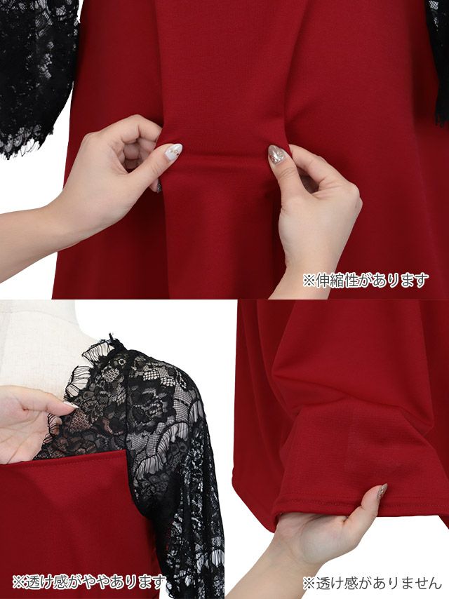 4. [SALE] ワンピース 安い Aラインミニドレス 長袖 ホステス 谷間 レース 大人 上品 ストレッチ ジップ ブラジャーのまま (林姫奈妙着用)