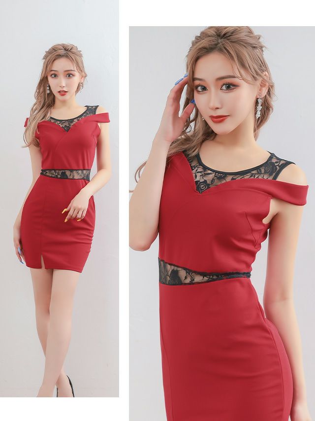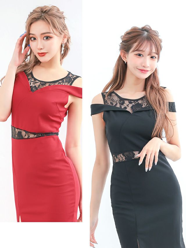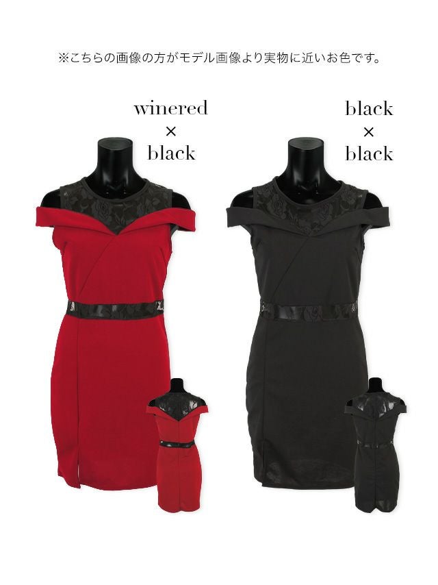 ウエスト切替フラワーレース肩あきタイトドレスのカラバリ画像