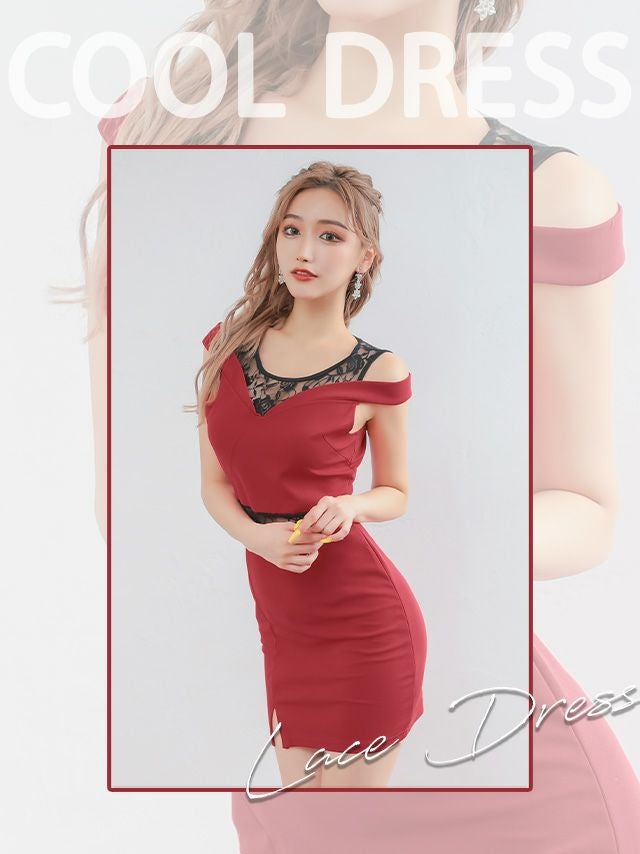 4. [SALE] フラワーレース肩出し 二の腕カバータイトミニドレス (斉藤らな着用)