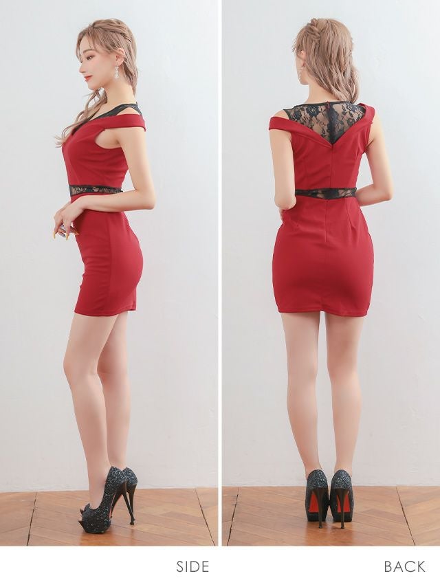ウエスト切替レースでセクシーに♪ [SALE] フラワーレース肩出し 二の腕カバータイトミニドレス (斉藤らな着用)