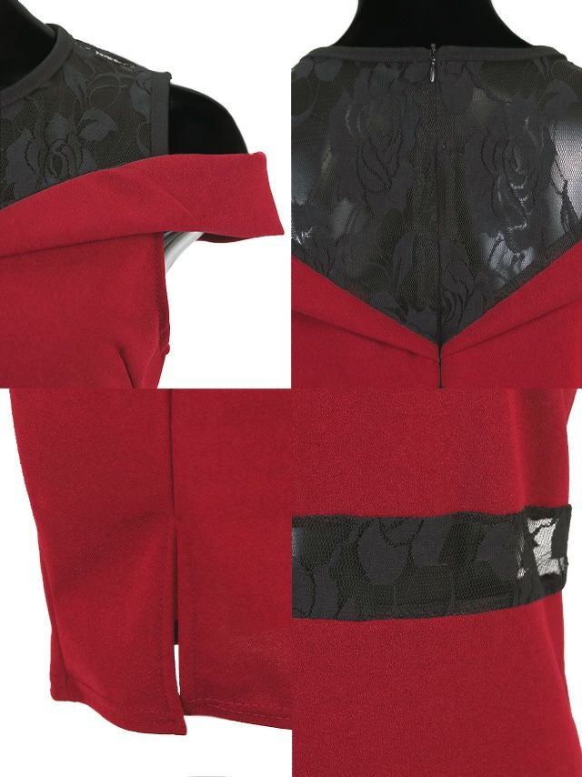 ウエスト切替フラワーレース肩あきタイトドレスの詳細画像