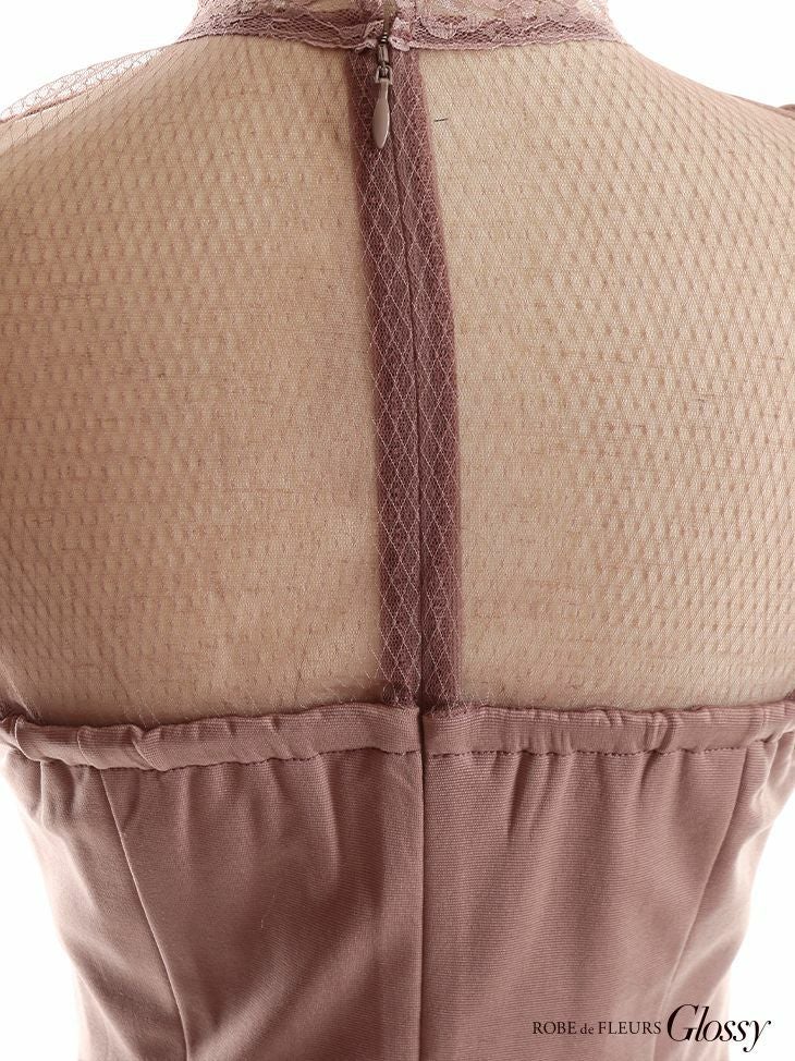 ストレッチが効いていて着心地◎ SALE [ROBEdeFLEURSGlossy/ローブドフルールグロッシー] 高級フリルスタンドネックバストジップカットアウトワンカラーノースリーブタイトミニドレス
