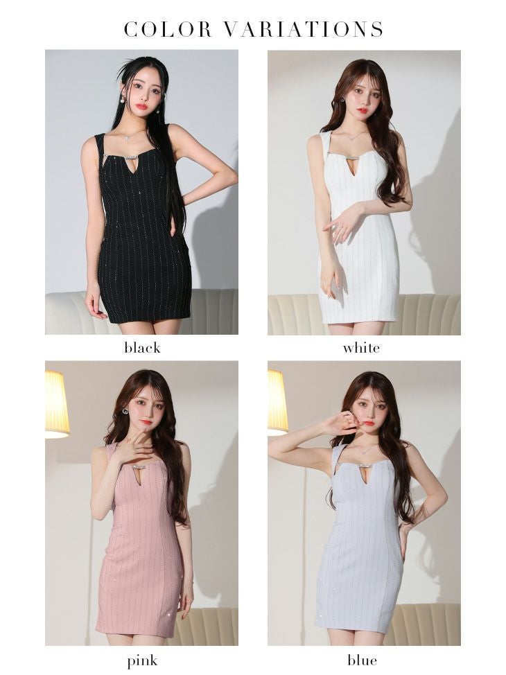 4. SALE [ROBEdeFLEURSGlossy/ローブドフルールグロッシー] 高級 ノースリーブ ボーダー バストカット ビジュー 谷間魅せ タイトミニドレス