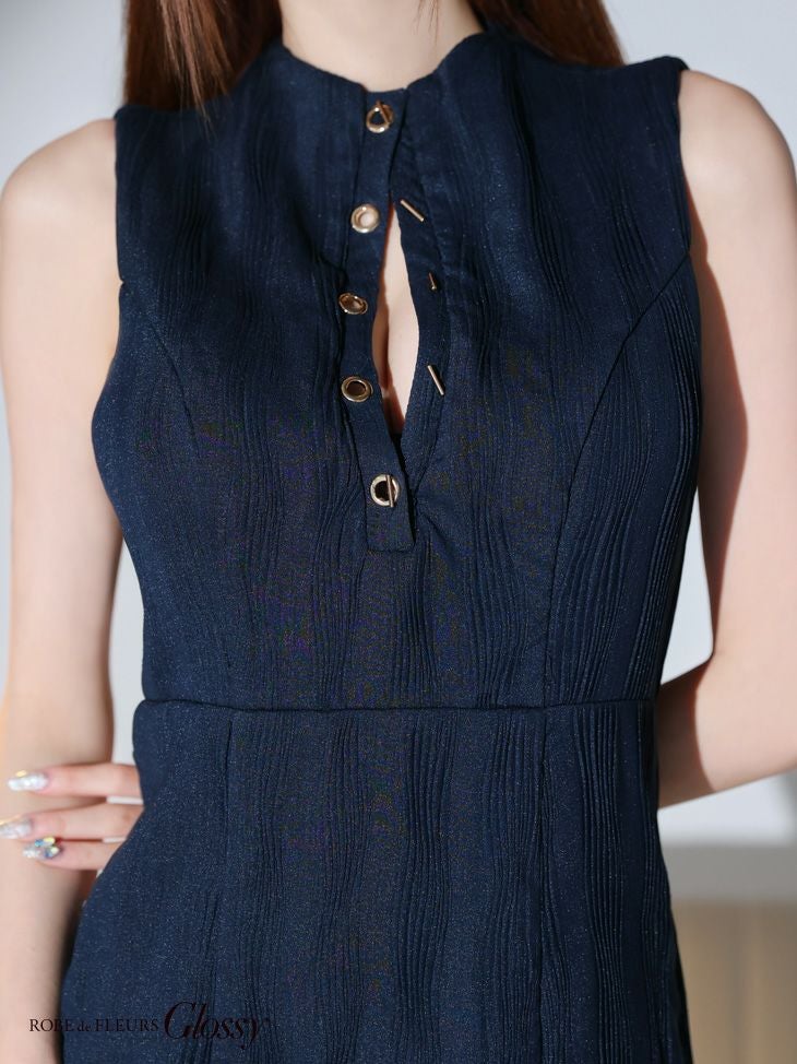 5. SALE [ROBEdeFLEURSGlossy/ローブドフルールグロッシー] 高級 バストカット リブニット ノースリーブ 谷間魅せ タイトミニドレス