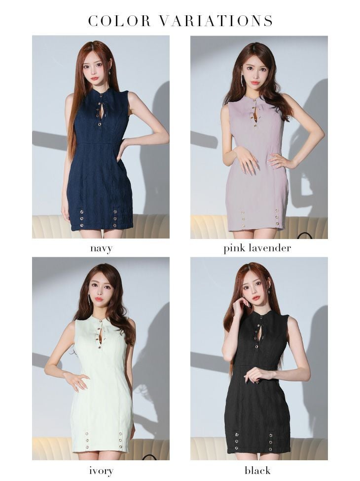 4. SALE [ROBEdeFLEURSGlossy/ローブドフルールグロッシー] 高級 バストカット リブニット ノースリーブ 谷間魅せ タイトミニドレス