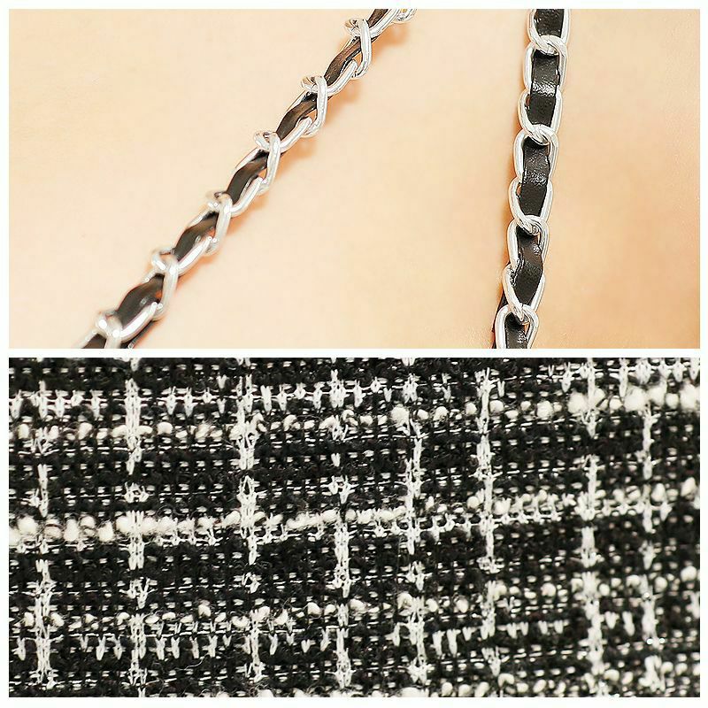 PURESS ピュアレス 高級フロントファスナーチェーンポケットフリルチェックキャミソールタイトミニドレス