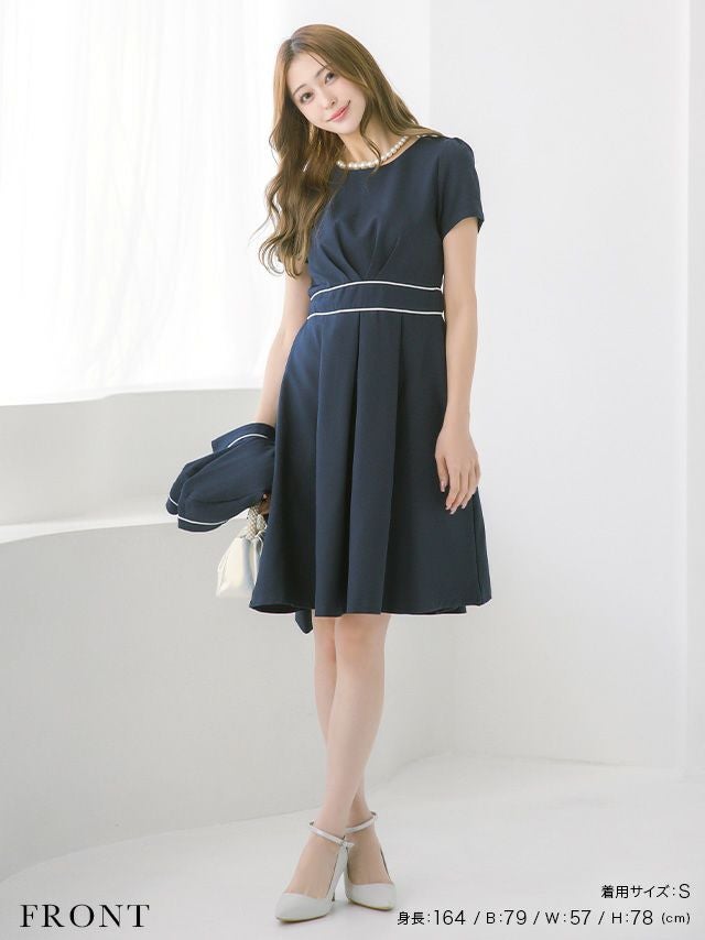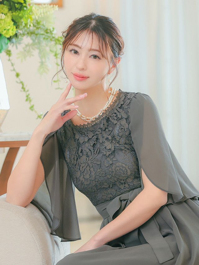 ちょっぴり訳ありの為、激安価格◎(左肩後ろに小さなキズあり) [ワケありセール] (左肩後ろに小さなキズあり) 半袖レースウエストマーク胸元プリーツ結婚式パーティードレス [Retica/レティカ]