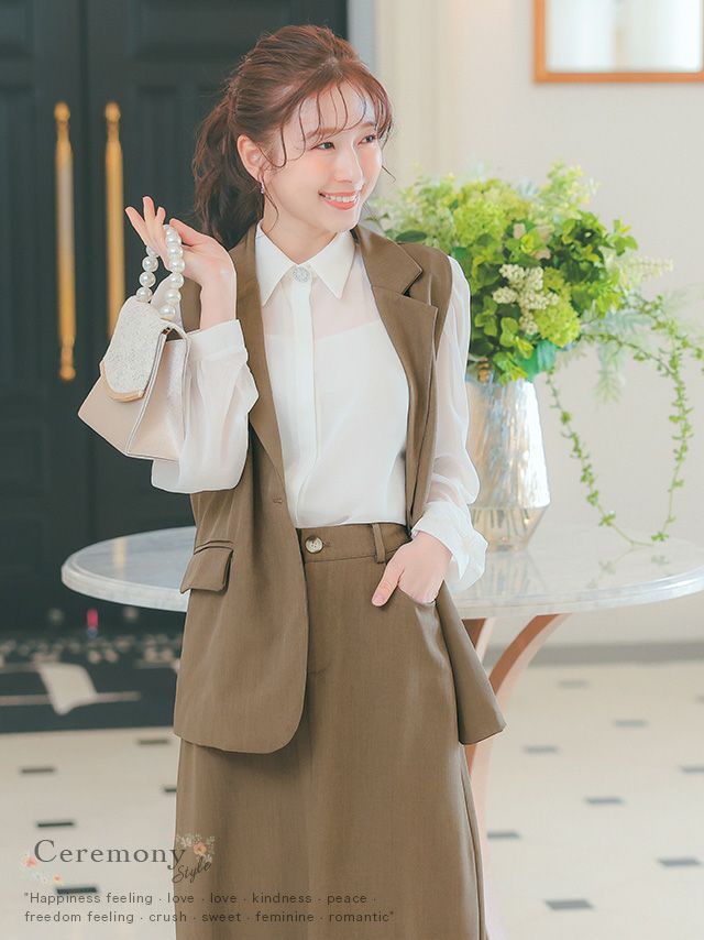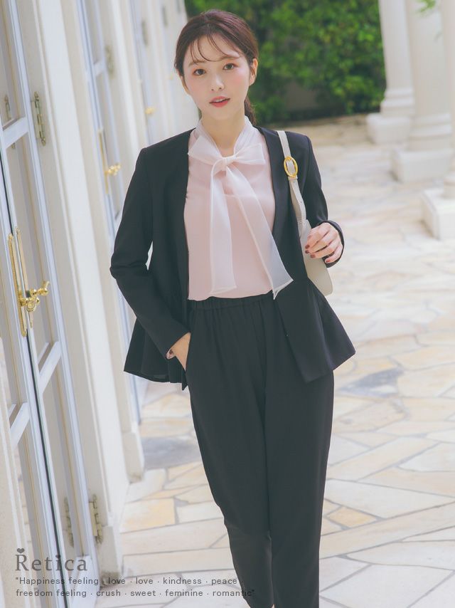 首元リボンで華やかに♪ [SALE] リボンタイ付きシフォンフリルシアーブラウス [Retica/レティカ]
