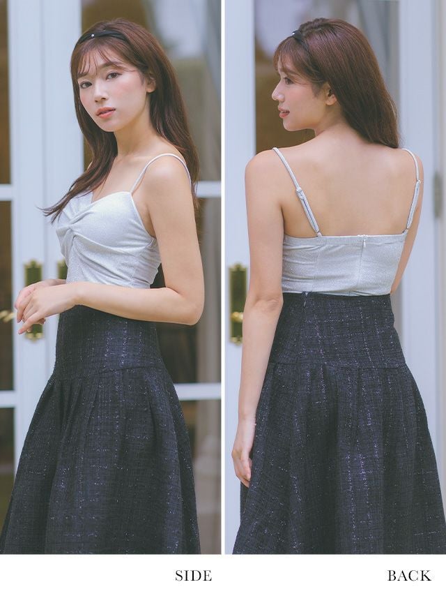 煌めくラメが華やかさをプラス♪ [SALE] ラメ入り胸元ねじりリボンデザインキャミソール [Retica/レティカ]