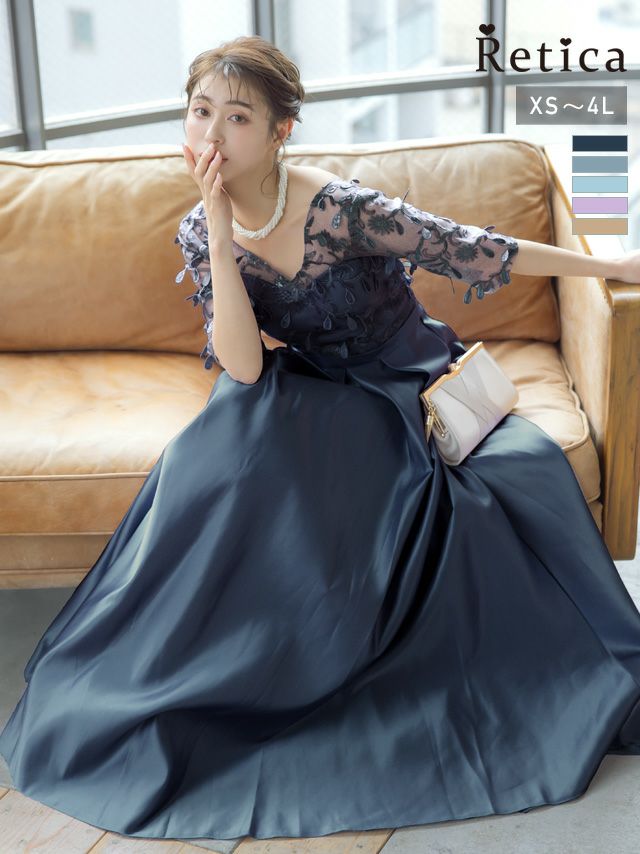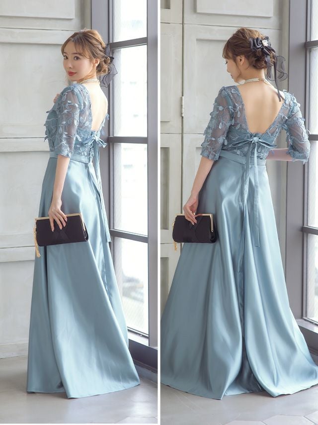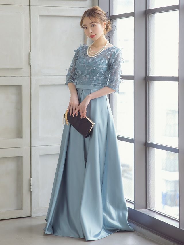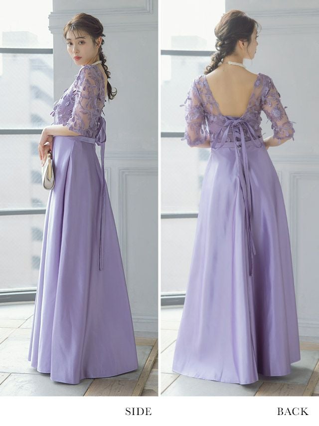 4. [SALE] 五分袖立体刺繍シアーバックスピンドルロングスカート結婚式パーティードレス [Retica/レティカ]