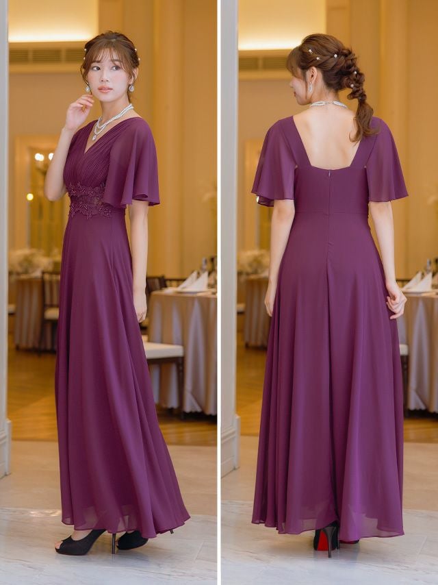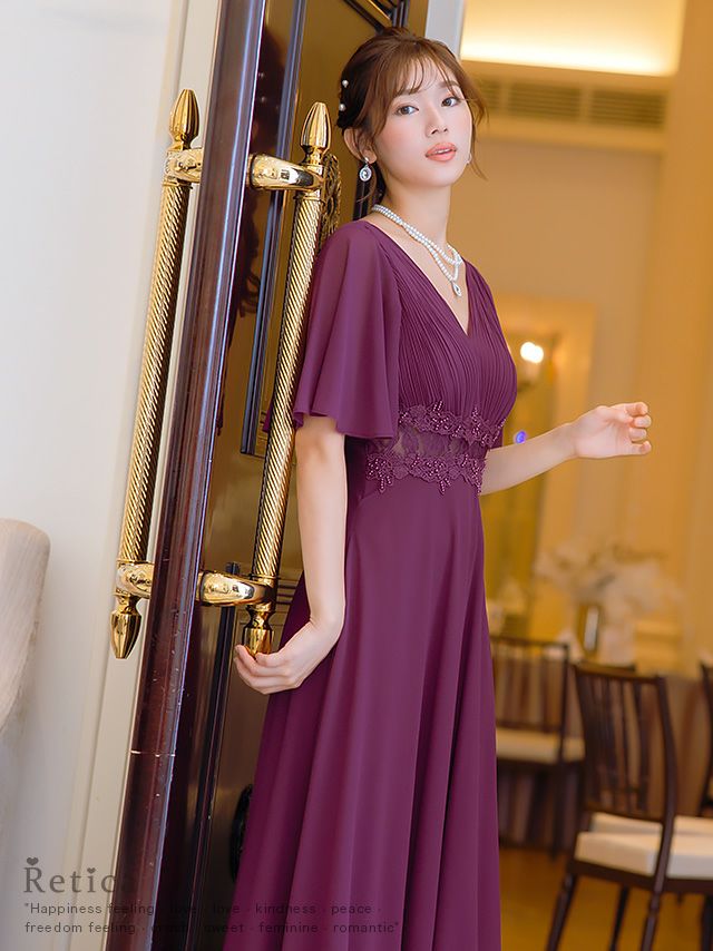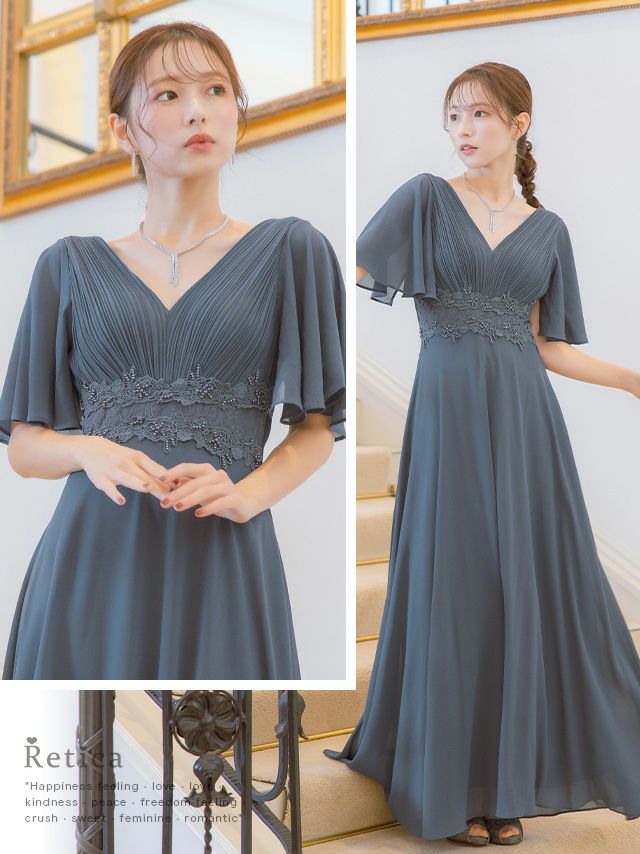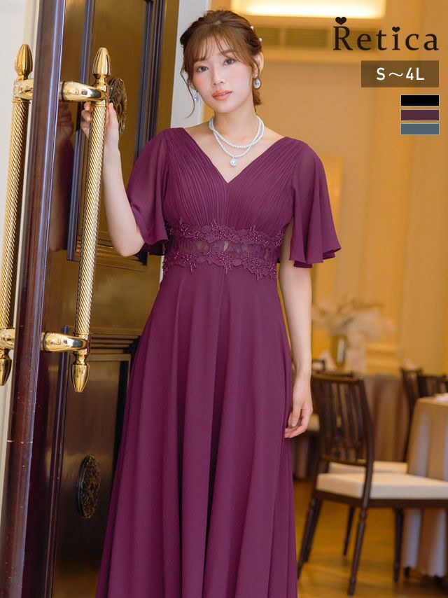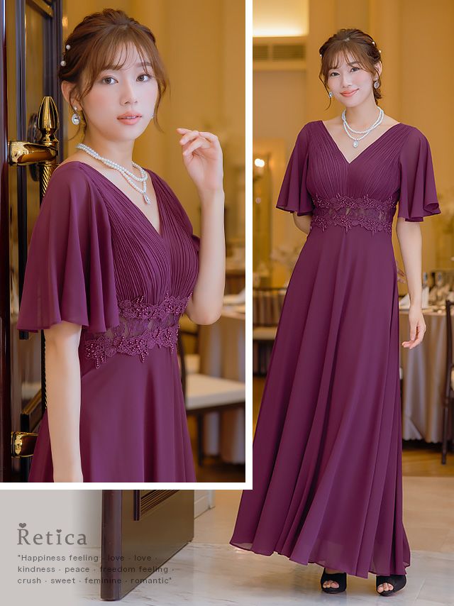 4. [SALE] 胸元プリーツマキシ丈パーティードレス結婚式パーティードレス [Retica/レティカ]