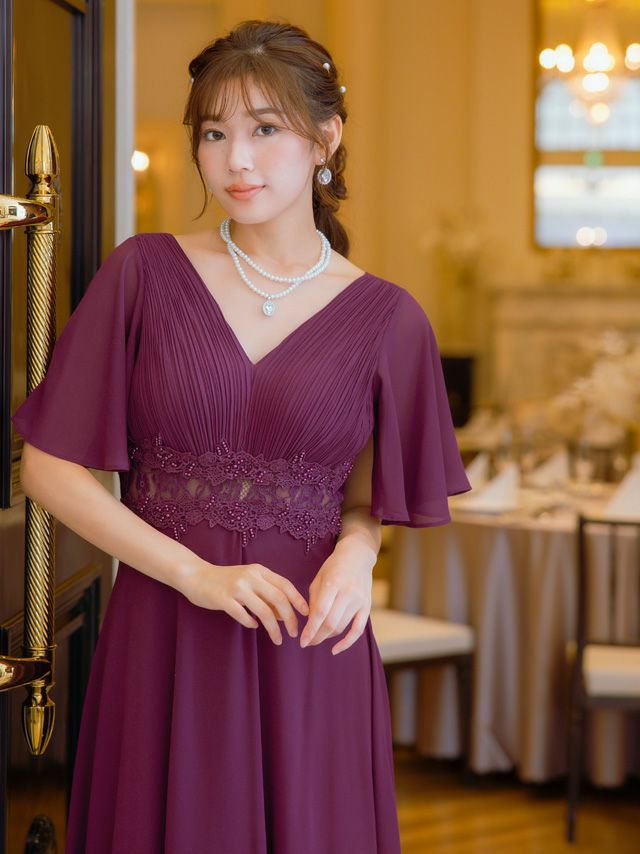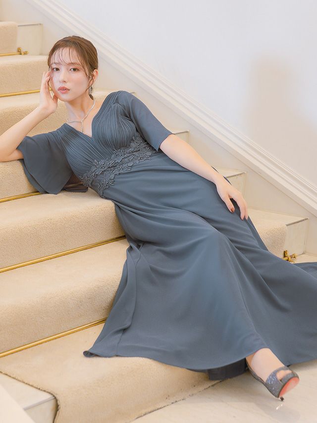 5. [SALE] 胸元プリーツマキシ丈パーティードレス結婚式パーティードレス [Retica/レティカ]