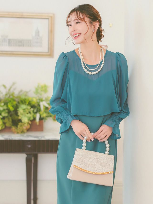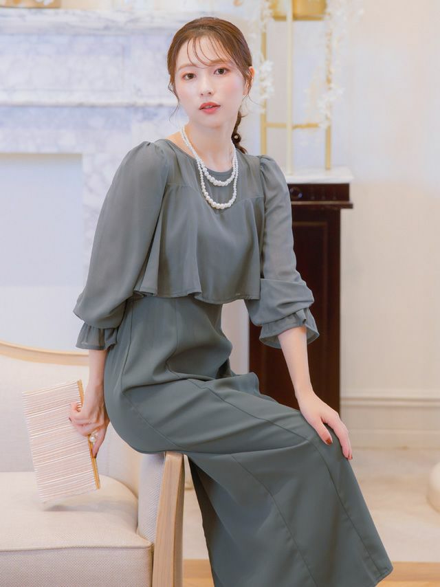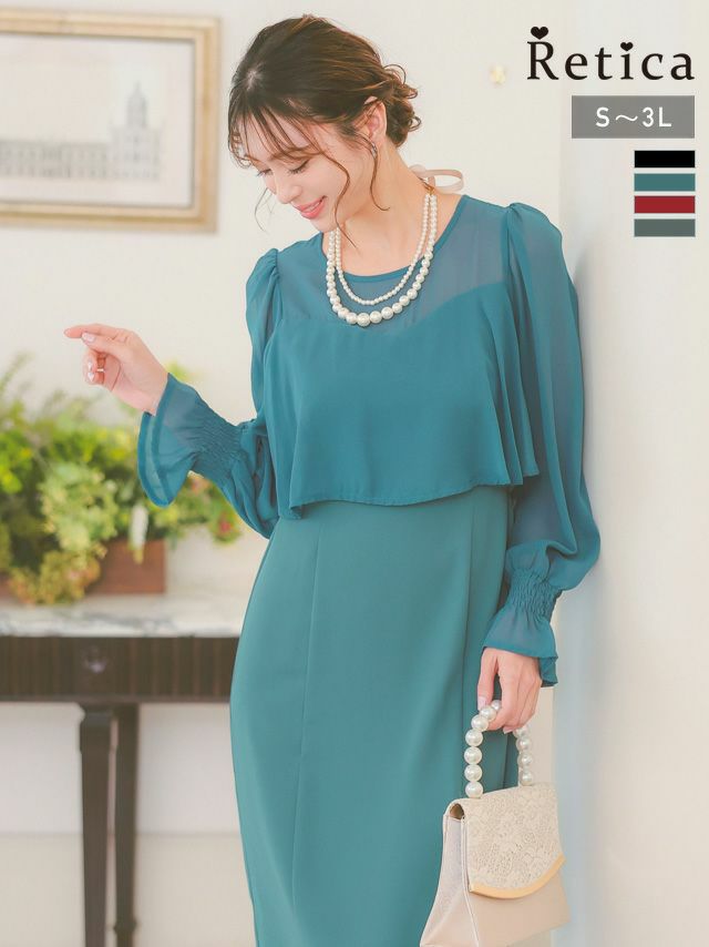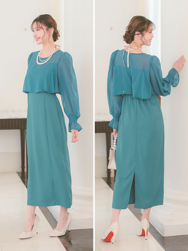 5. [SALE] シアーフリル袖バックスリット入りロングスカートパーティードレス結婚式パーティードレス [Retica/レティカ]
