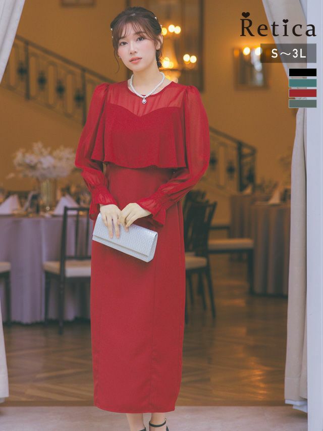 4. [SALE] シアーフリル袖バックスリット入りロングスカートパーティードレス結婚式パーティードレス [Retica/レティカ]