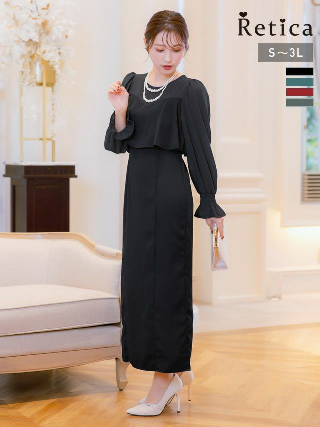 [SALE] シアーフリル袖バックスリット入りロングスカートパーティードレス結婚式パーティードレス [Retica/レティカ]