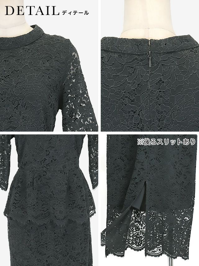 4. [SALE] 総レース五分袖トップス×タイトスカートツーピース結婚式パーティードレス [Retica/レティカ]