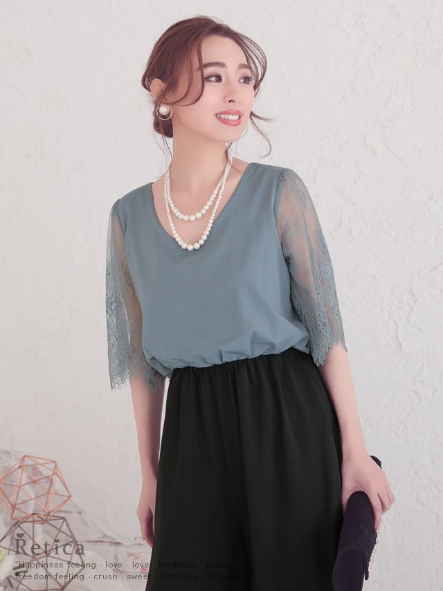 [SALE] バイカラーパンツ五分袖レース結婚式パーティードレス [Retica/レティカ]