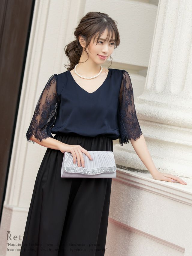 4. [SALE] バイカラーパンツ五分袖レース結婚式パーティードレス [Retica/レティカ]