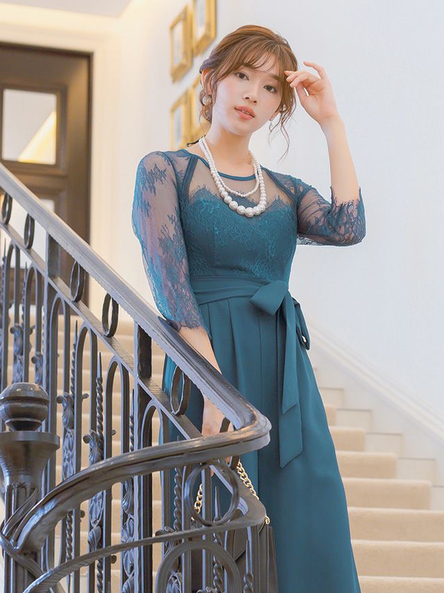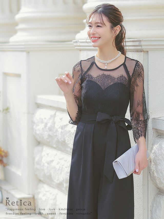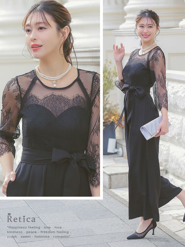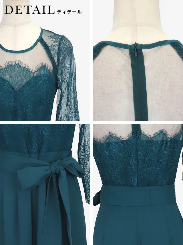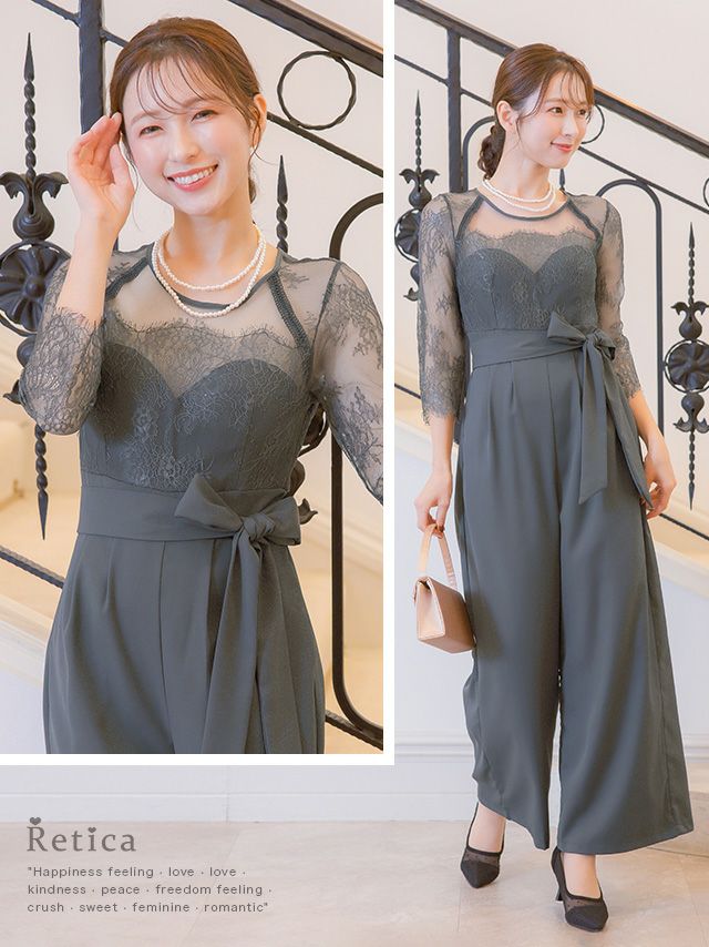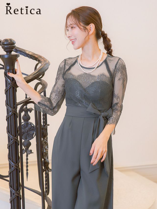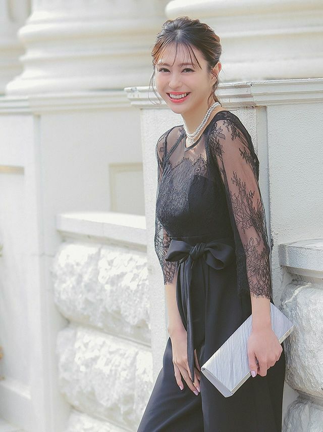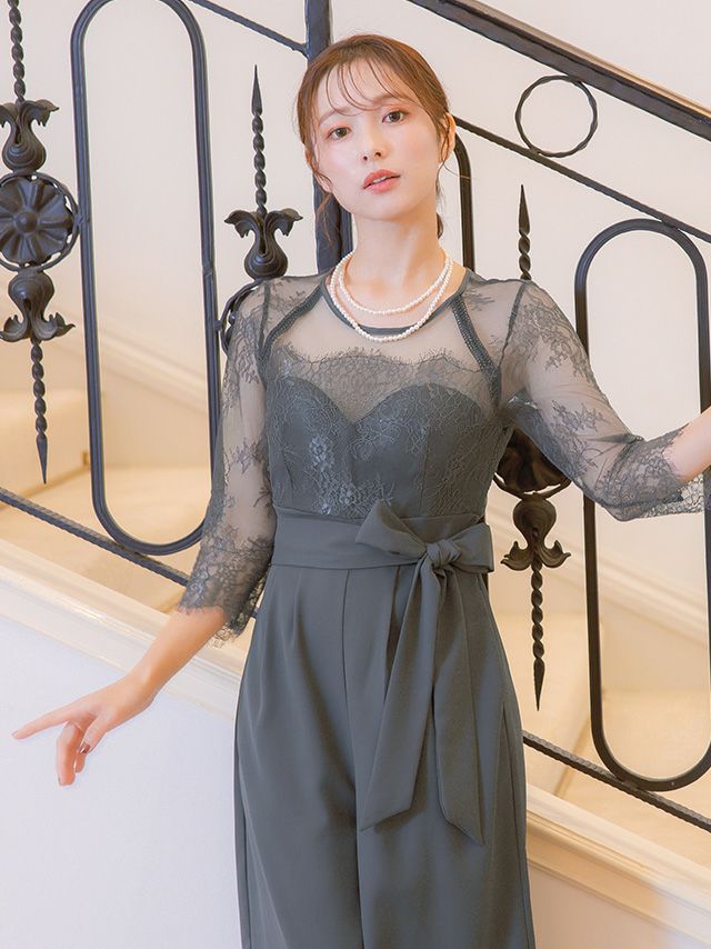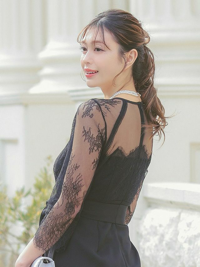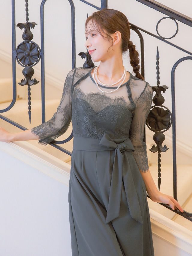 レースとシアー生地が上品な印象を与える