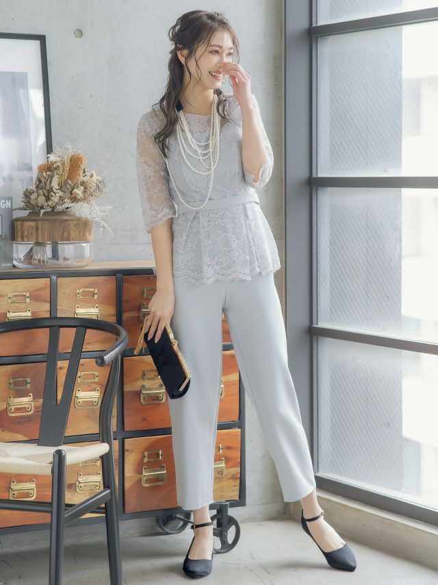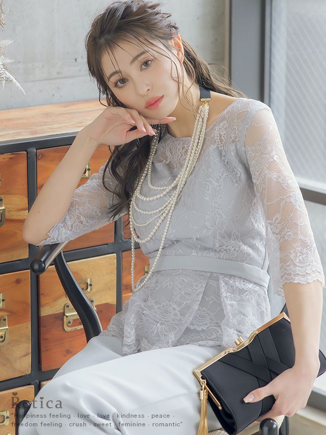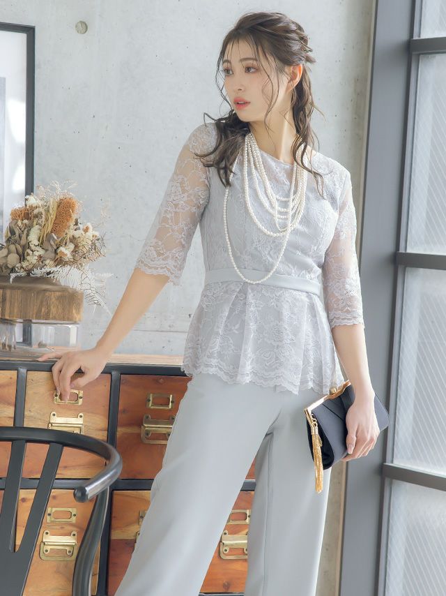 3. [SALE] 五分袖レースウエストペプラムパンツ結婚式パーティードレス [Retica/レティカ]