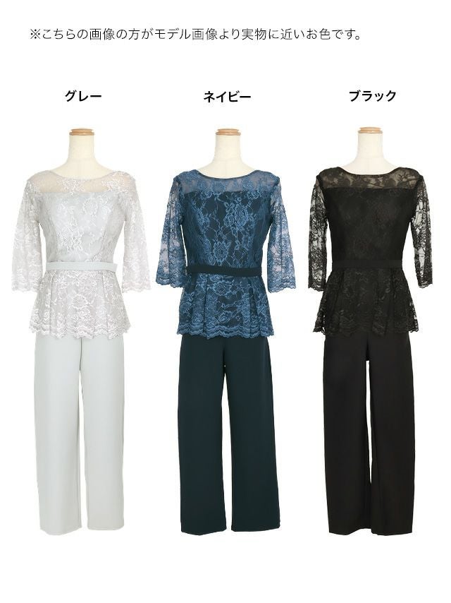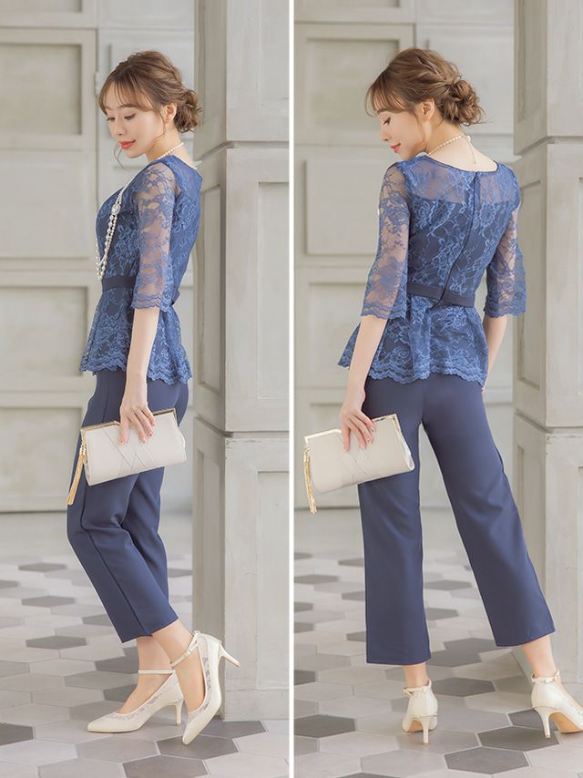 レースウエストペプラムツーピースパンツハーフスリーブ結婚式パーティードレスのカラーバリエーション画像