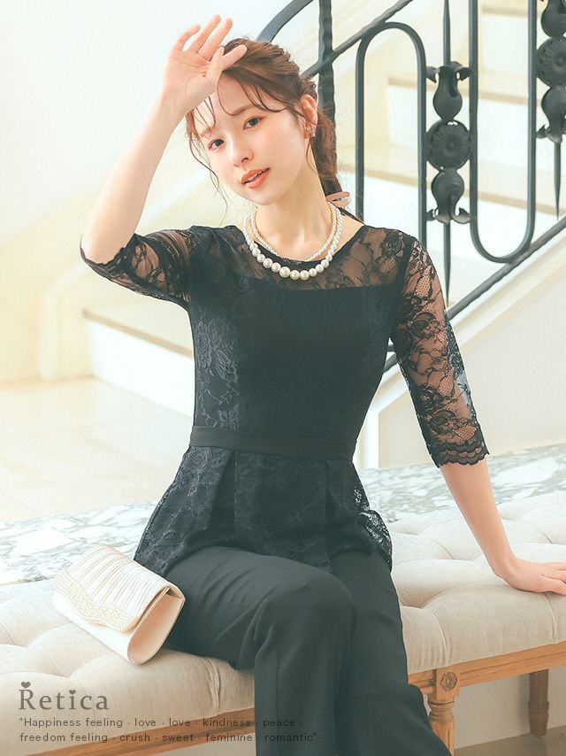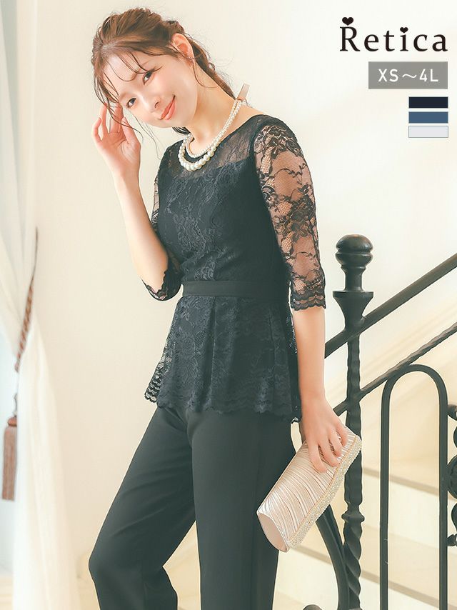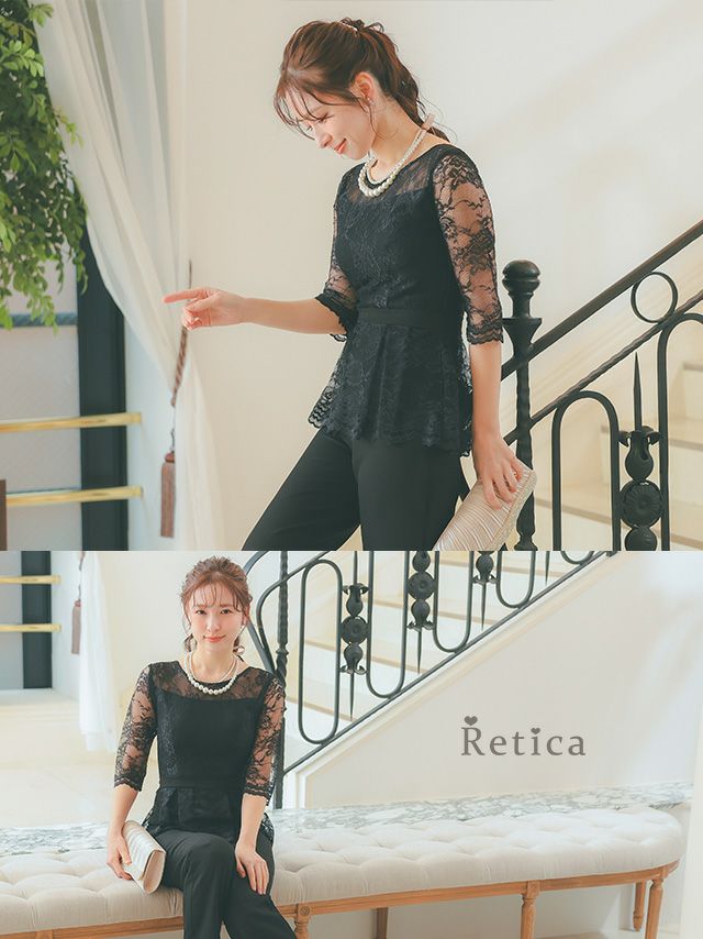 4. [SALE] 五分袖レースウエストペプラムパンツ結婚式パーティードレス [Retica/レティカ]