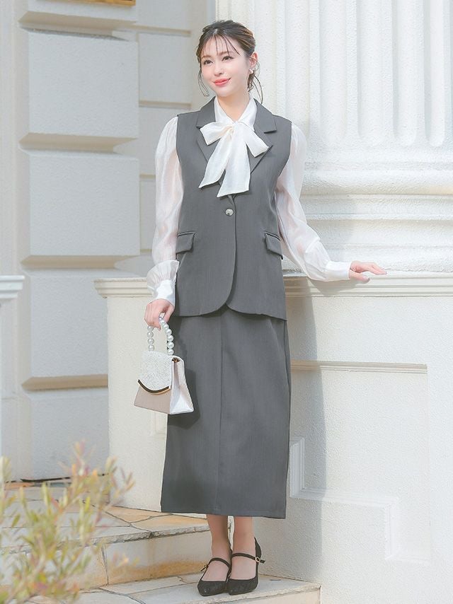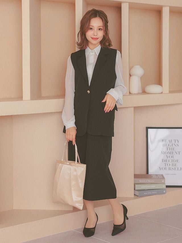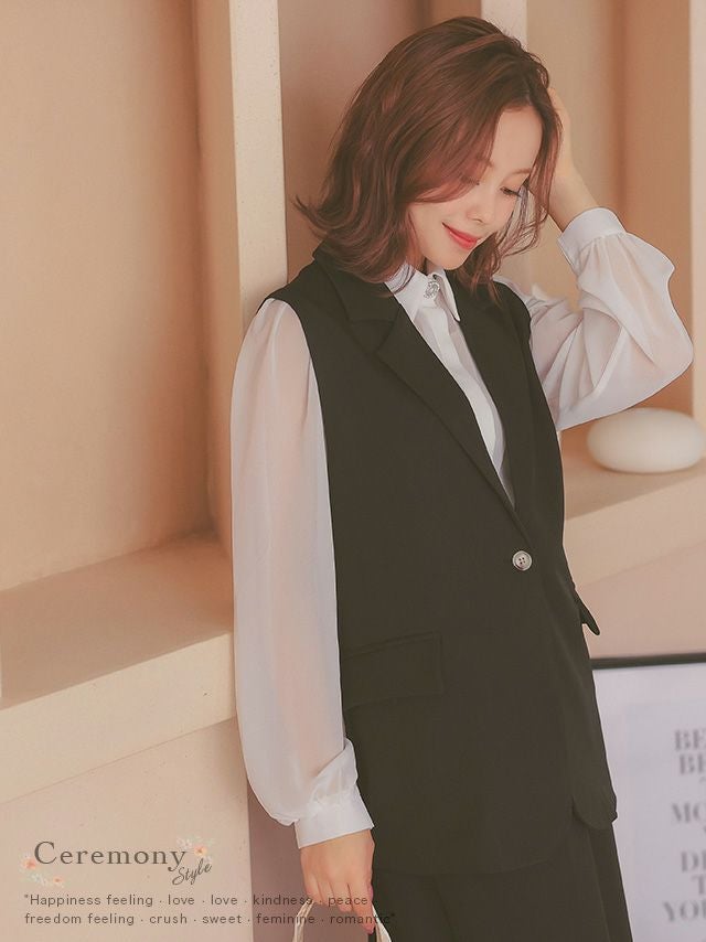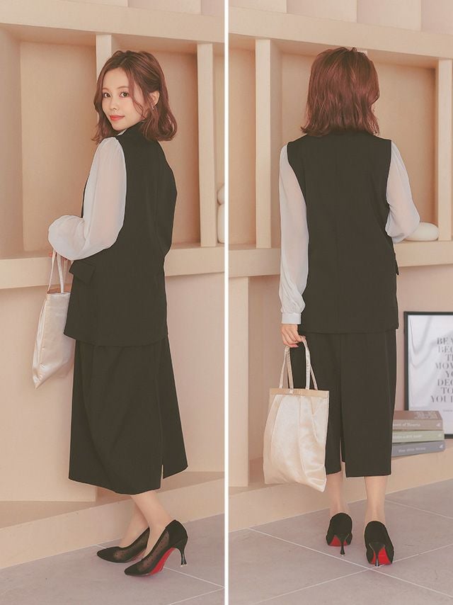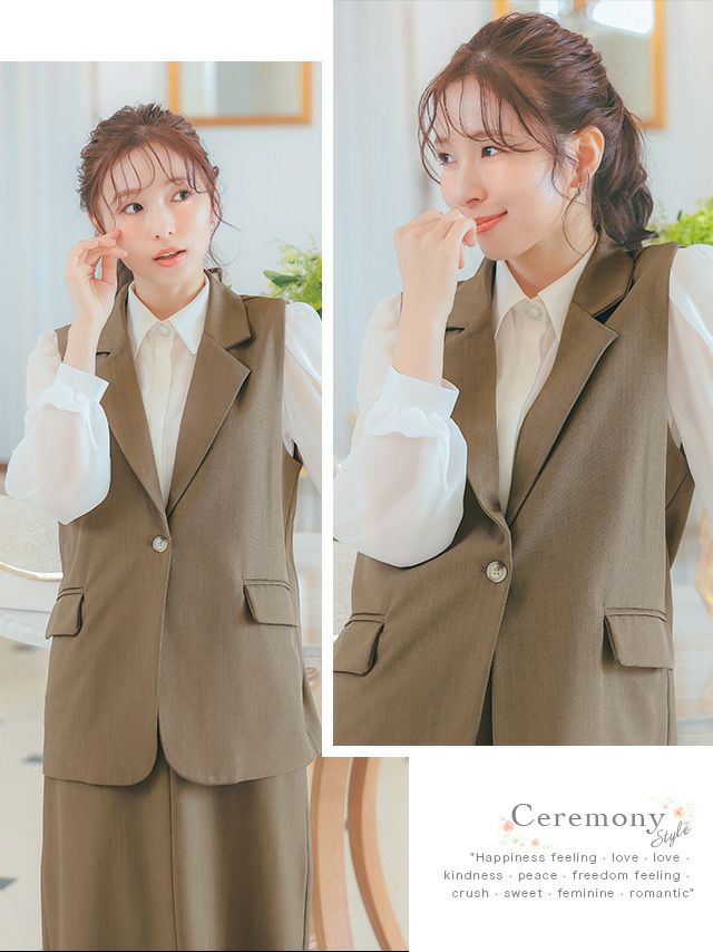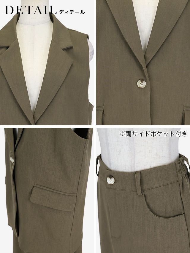 襟付きベストがきちんと感を引き出すセットアップ♪
