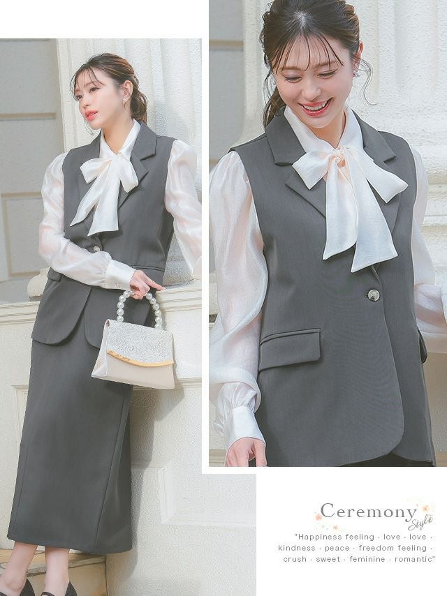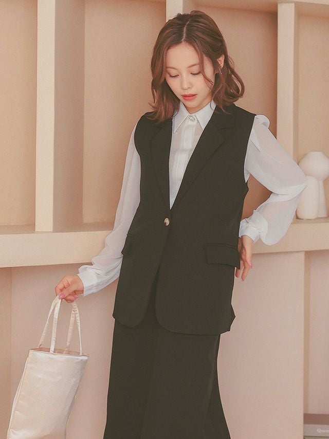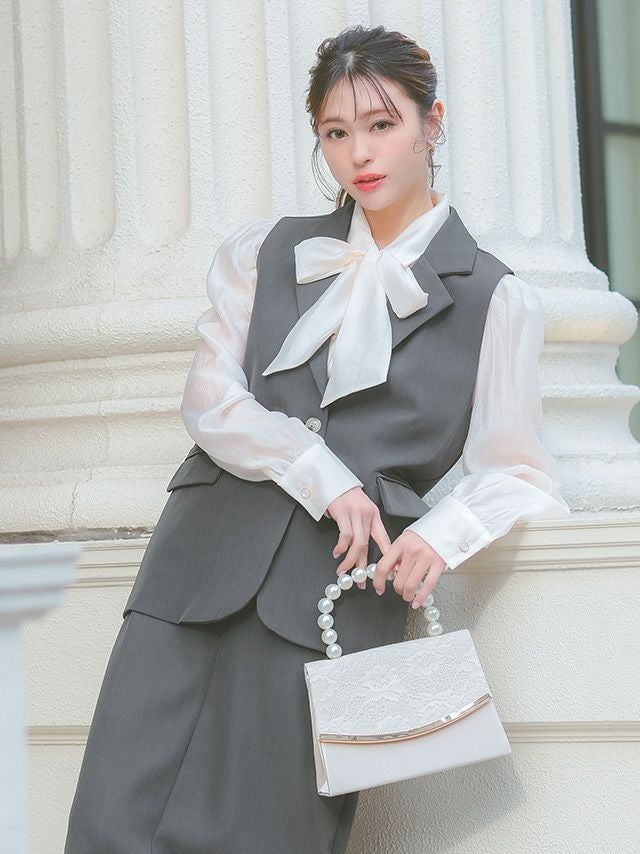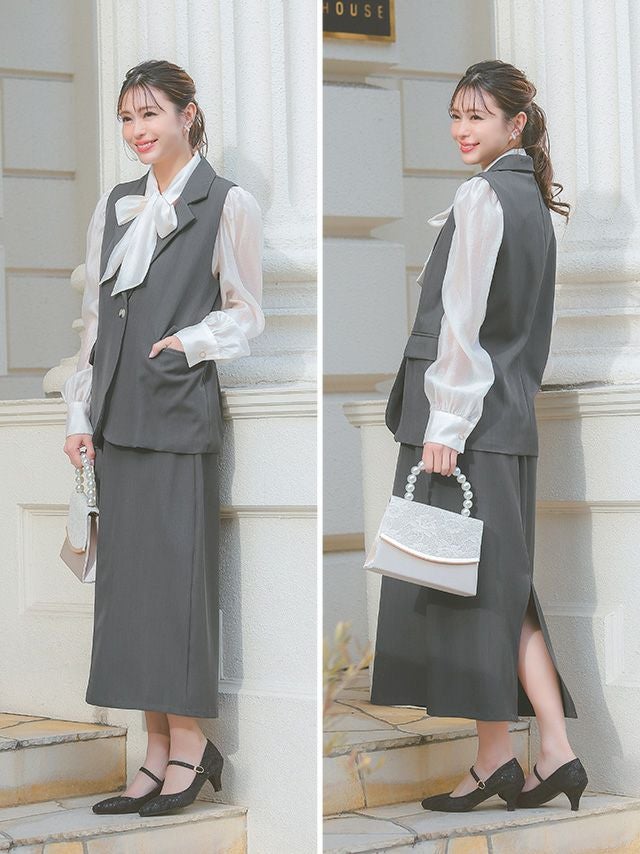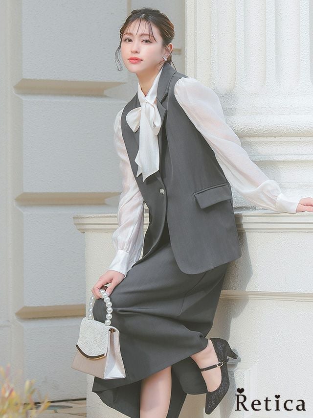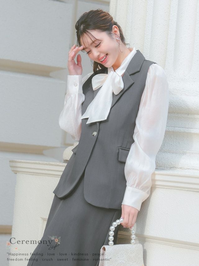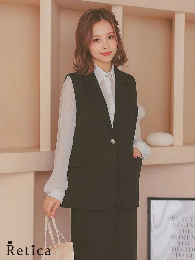 襟付きベストがきちんと感を引き出すセットアップ♪