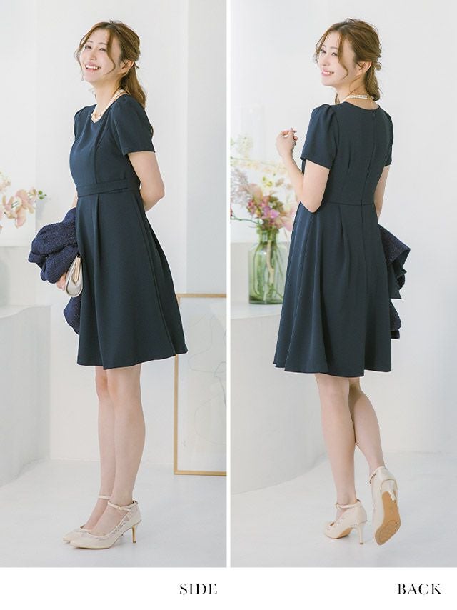 美しい曲線を描くフレアワンピースは