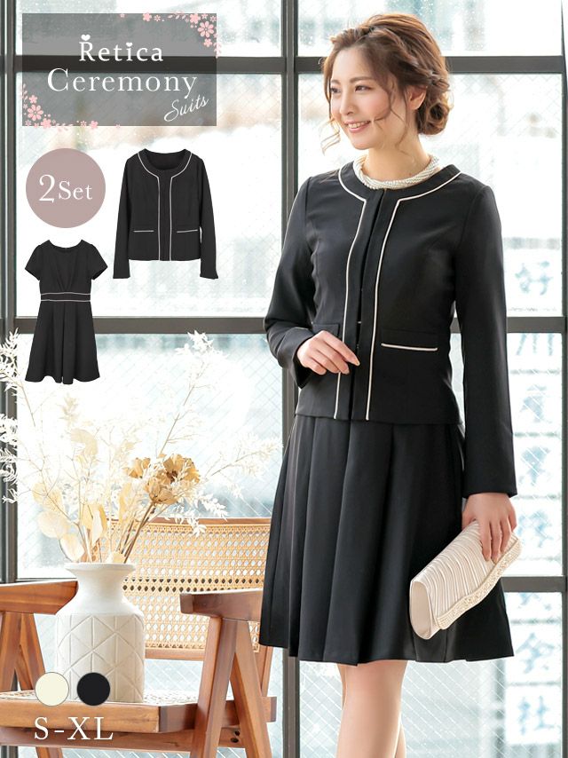 3. [SALE] パイピングデザイン膝下ワンピーススタイルセレモニースーツ [Retica/レティカ]