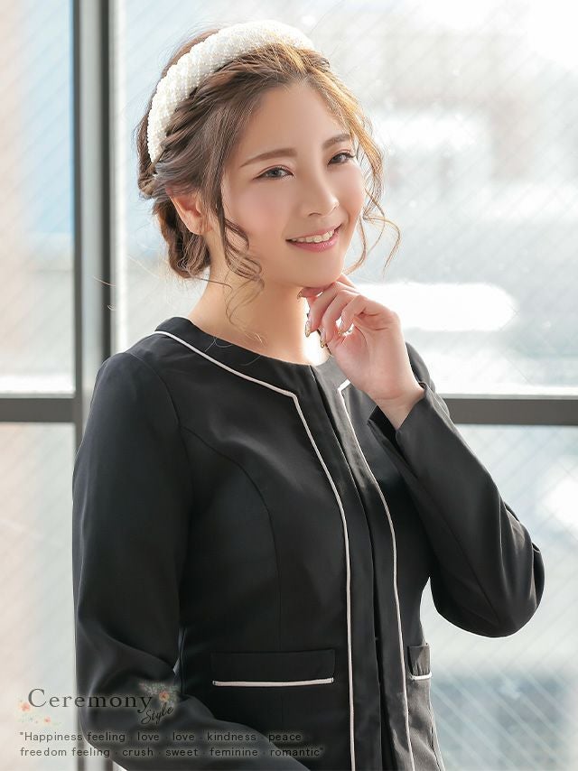 5. [SALE] パイピングデザイン膝下ワンピーススタイルセレモニースーツ [Retica/レティカ]