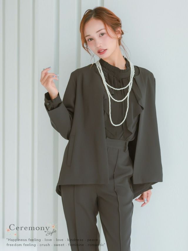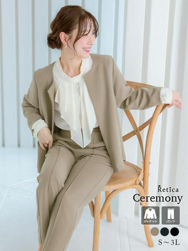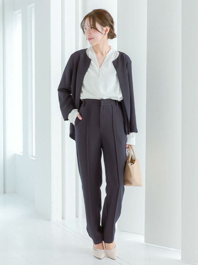 ノーカラージャケットですっきりとした印象に☆
