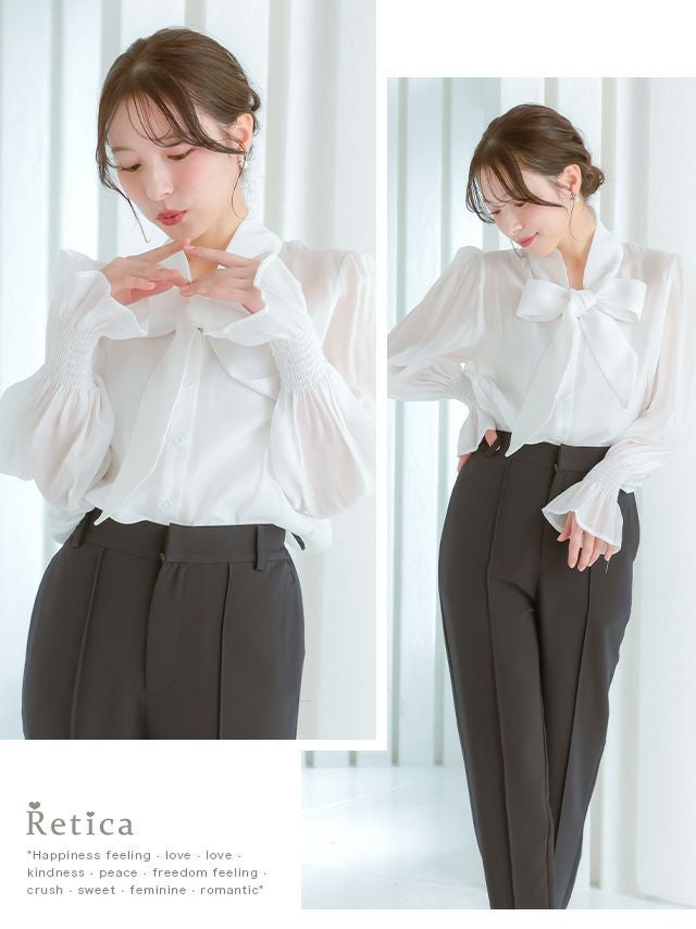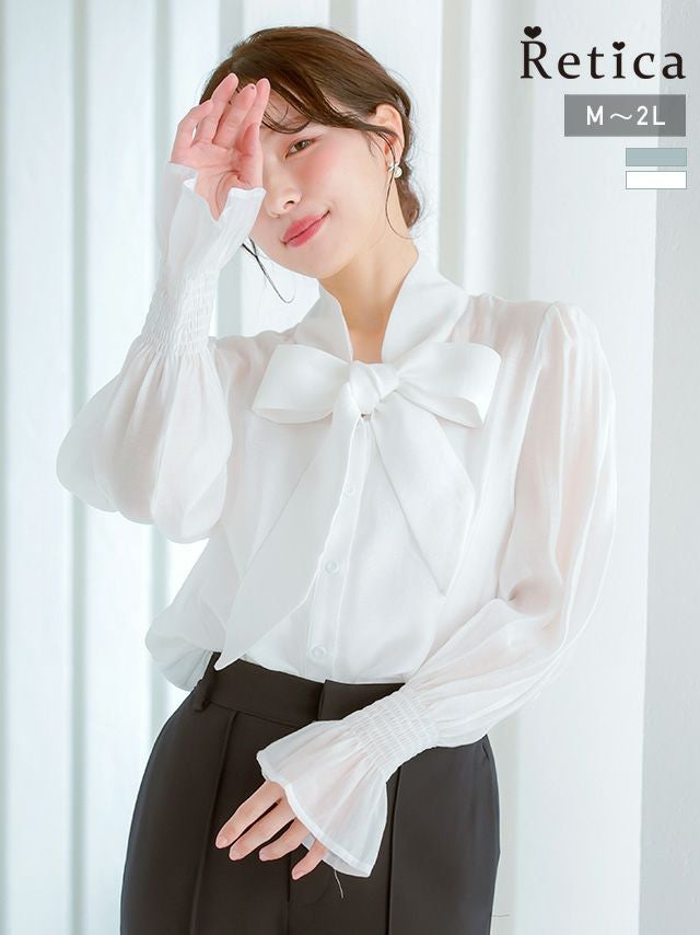 首元リボンで華やかに♪ [SALE] リボンタイ付きシフォンフリルシアーブラウス [Retica/レティカ]