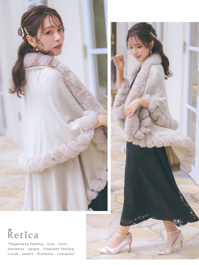 3. [SALE] ファー付きソフトニットポンチョ風ロング丈ボレロ [Retica/レティカ]