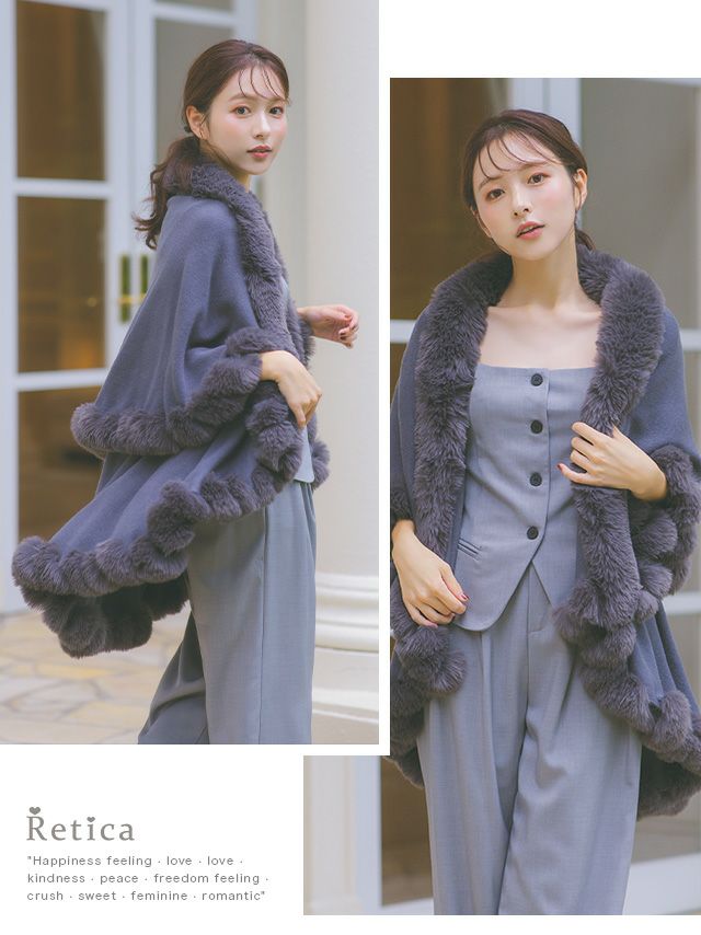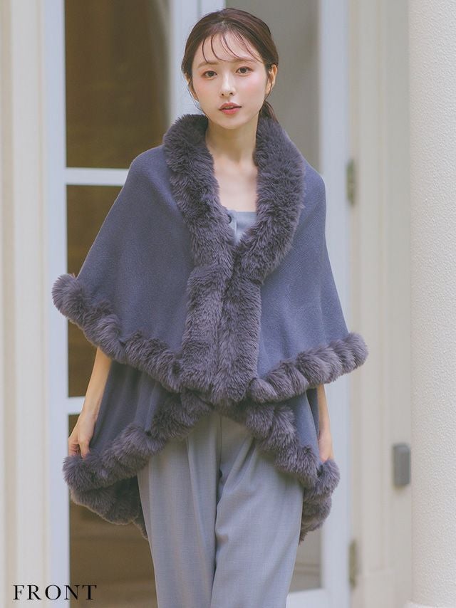 4. [SALE] ファー付きソフトニットポンチョ風ロング丈ボレロ [Retica/レティカ]