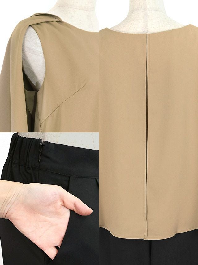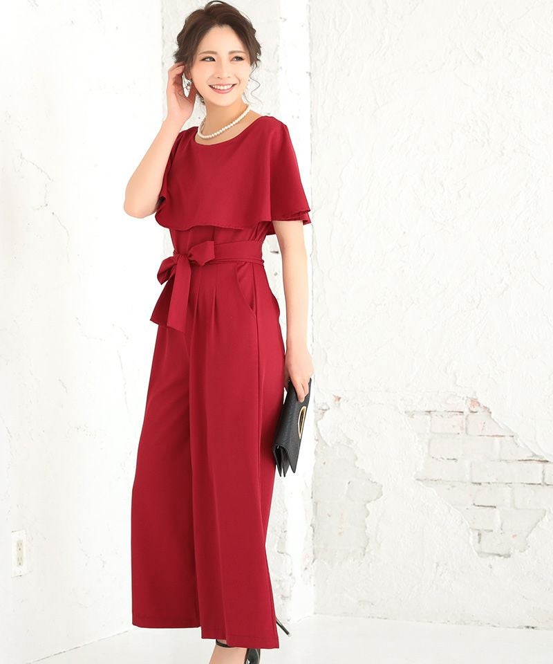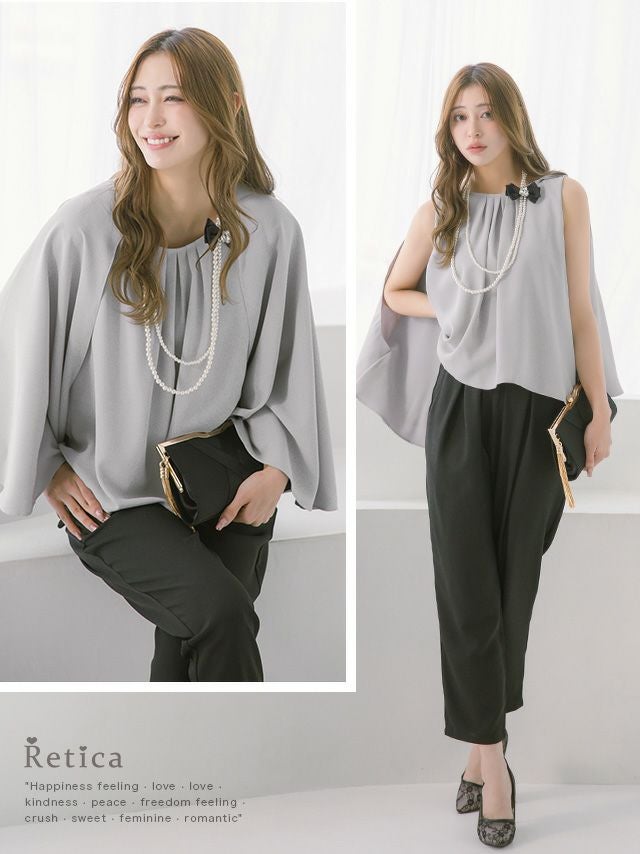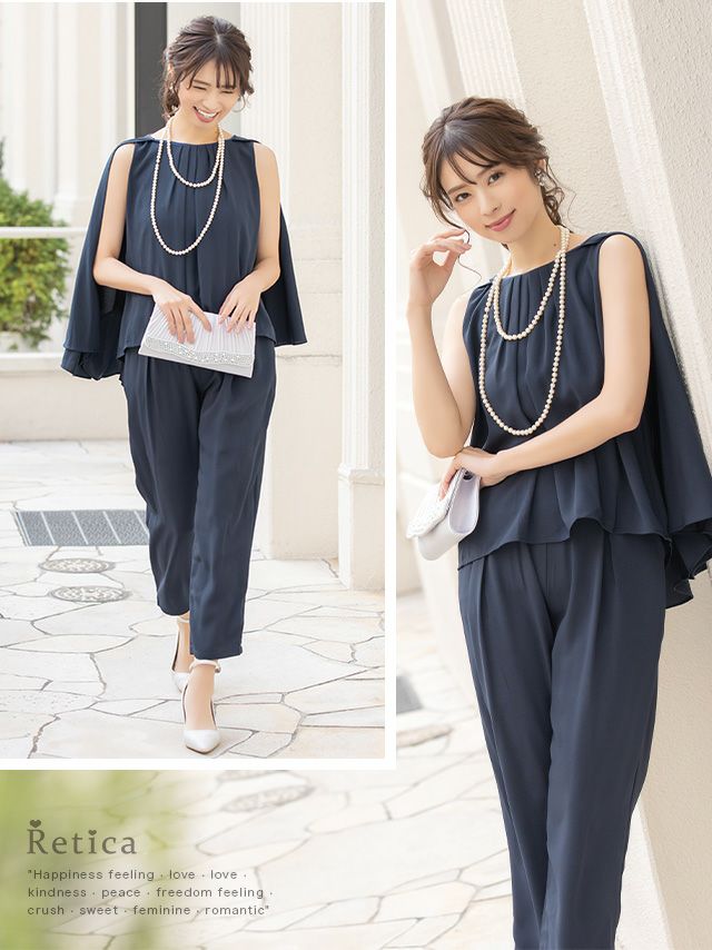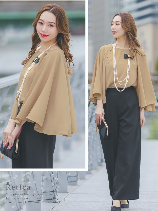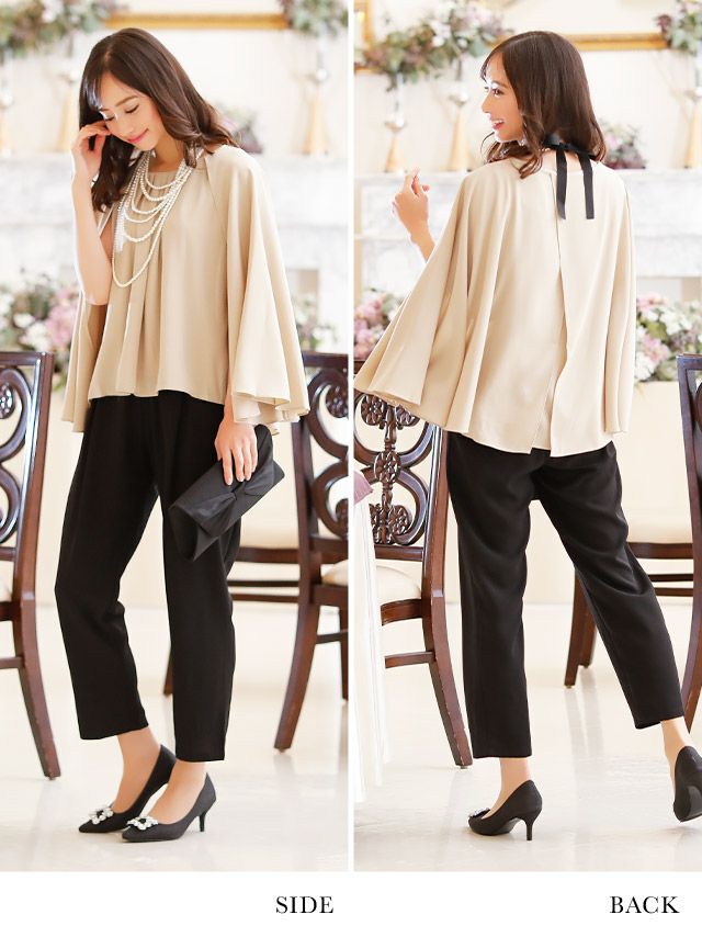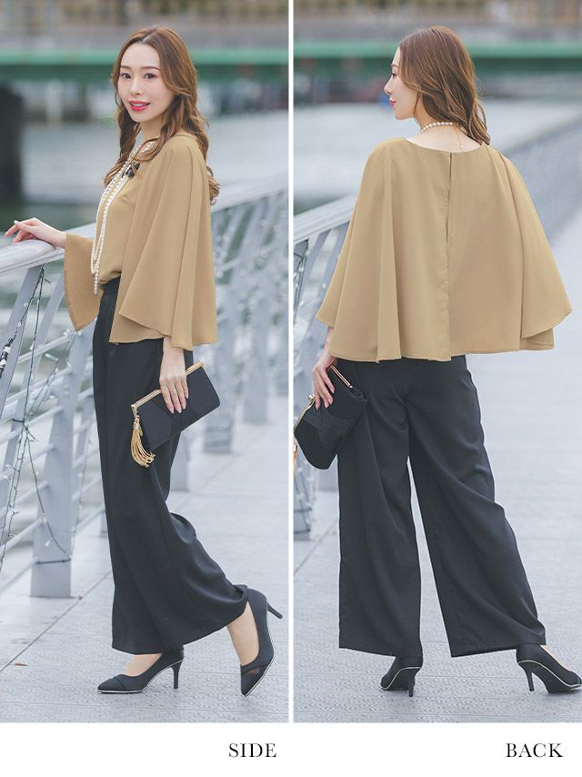 ちょっぴり訳ありの為、激安価格◎(トップスなし) [ワケありセール] (トップスなし) レースケープデザイントップス大人テーパードハンサム結婚式パーティーパンツドレス