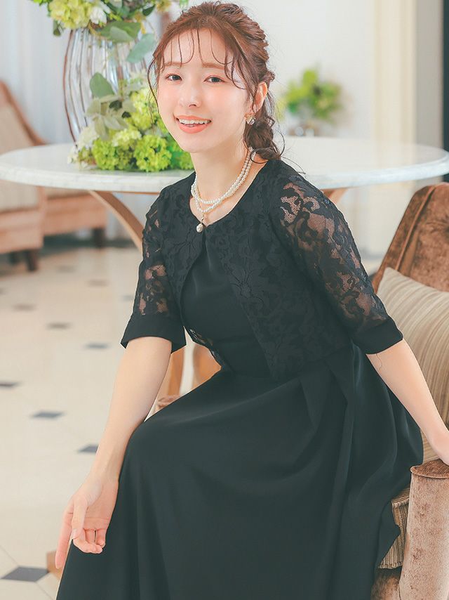 どんなドレスにも合わせやすい♪ [SALE] レース袖切り替えデザイン半袖ショート丈ボレロ [Retica/レティカ]