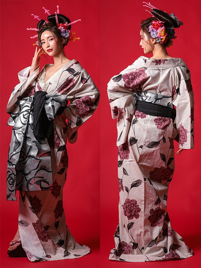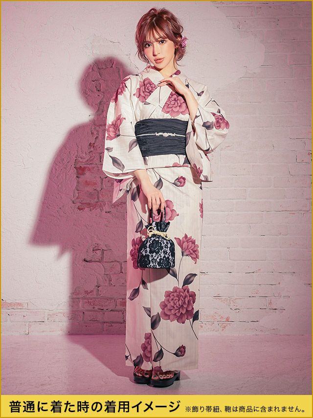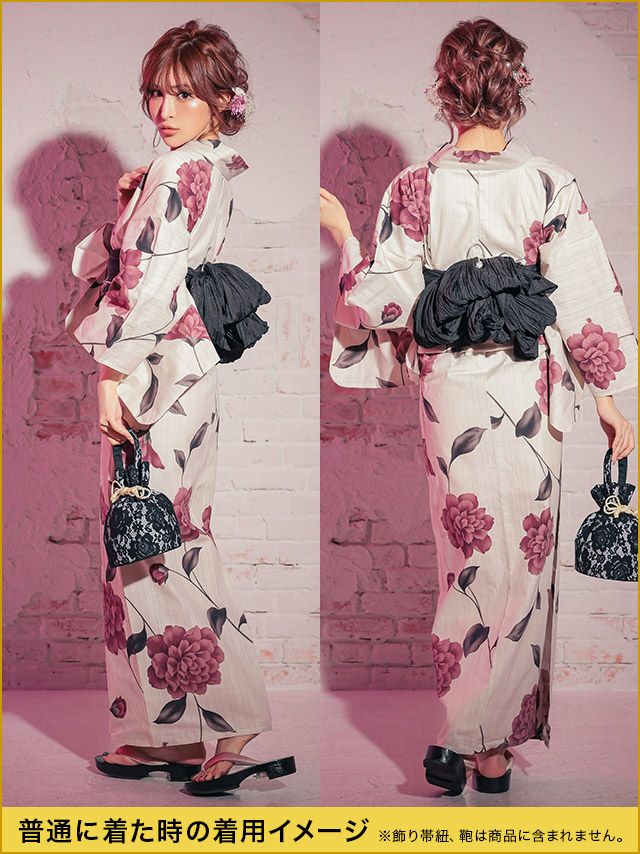 多くの浴衣は「浴衣+帯」または「浴衣+帯+下駄」の3点セットになっています。商品ごとにセット内容が異なるため、各ページの詳細をご確認ください。